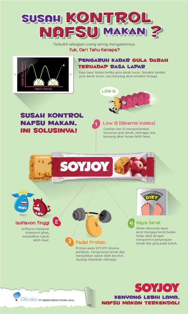 Susah kontrol nafsu makan? Dengan SOYJOY, kenyang lebih lama nafsu makan terkendali.